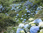 見ごろを迎えている大崎のアジサイ。遊歩道は閉鎖中だが、周辺から見える (2006/07/15)