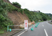15日からの雨で、幅約30メートル・高さ約10メートルの土砂が崩壊した市内笠島の斜面 (2006/07/19)