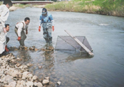 鵜川で行われているそ上アユの調査 (2006/06/16)