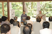 緑豊かな庭園を舞台に、じっくり聴かせた葛の葉会のごぜ唄公演=飯塚邸 (2006/06/20)