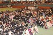 新調のスーツ、和服姿で若さと華やいだ雰囲気に包まれた新成人フェスティバル=3日、市総合体育館 (2006/05/03)