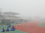 濃い霧に覆われた市陸上競技場=8日午後4時過ぎ (2006/05/09)