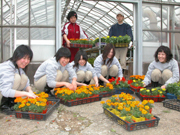 販売する苗の準備に励む柏崎総合高3年生=19日 (2006/04/20)