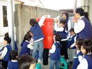 柏崎郵便局で感謝を込めてポストをきれいにする小鳩幼稚園の園児たち=24日 (2006/04/24)