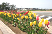 鯖石川改修記念公園の花壇で咲く1000本のチューリップ。満開を迎え、訪れた人を楽しませる。 (2006/04/26)