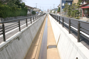 鋼鉄の矢板護岸からコンクリート護岸に改修された幸町地内の塩込川 (2006/04/14)