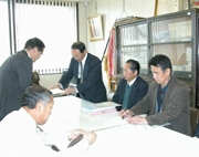 旧別俣小校舎の活用策を提案する地元関係者=市教育長室 (2006/03/31)
