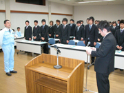 リケン柏崎事業所の入社式で藤田所長(左)に決意を述べる新入社員 (2006/04/03)