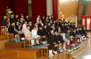 荒浜小の入学式で元気よく返事をする新1年生 (2006/04/06)