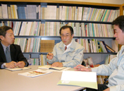 技術開発振興協会事務局の商議所で打ち合わせを行う藤田・工業アドバイザー(中央) (2006/04/07)