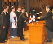 新潟産大卒業式で大学院修士課程初の修了生=市民会館大ホール (2006/03/23)