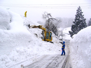 雪庇を落とす作業が行われている主要地方道松代・高柳線=11日、市内高柳町門出 (2006/01/11)