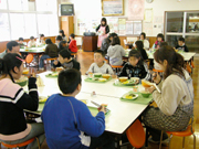 柏崎の食材に関心を持ってもらおうと、谷根川に帰ってきたサケを使った給食=野田小 (2006/01/18)