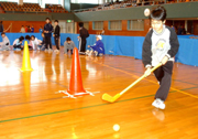こどもスポーツ番付の大会で「ドリブラー」に挑戦する参加者=26日、市総合体育館 (2005/12/28)