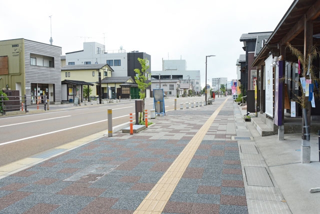 幅広くきれいな歩道になったえんま通り商店街。若い人を中心に、新たな業態の進出が予定される=市内東本町2 (2021/07/14)