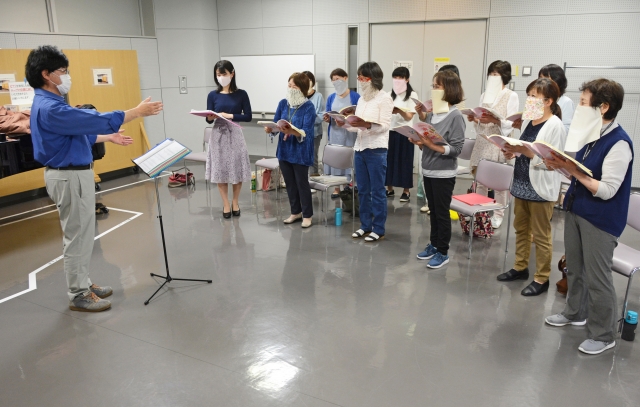 最後の演奏会を前に、思いを込めて練習するコーラス枇杷の実=3日、市民プラザ (2021/06/10)