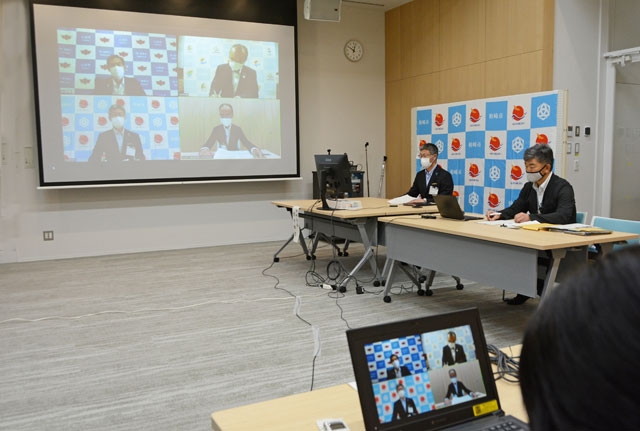 桜井市長ら3市の首長がオンラインで行った拉致被害者関係市連絡会=15日、市役所多目的室