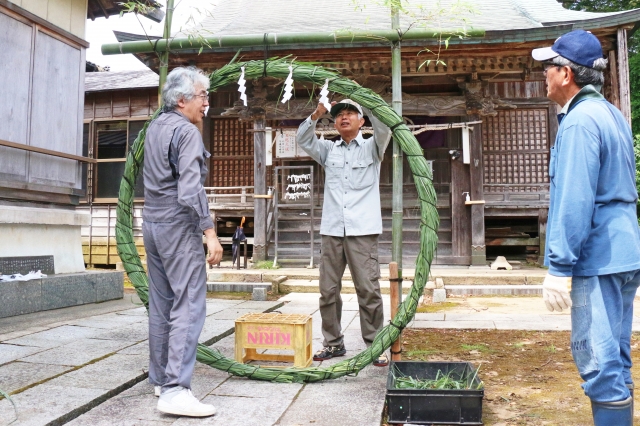夏越大祓に向け整えられた茅の輪=18日、市内宮場町の鵜川神社 (2021/06/18)
